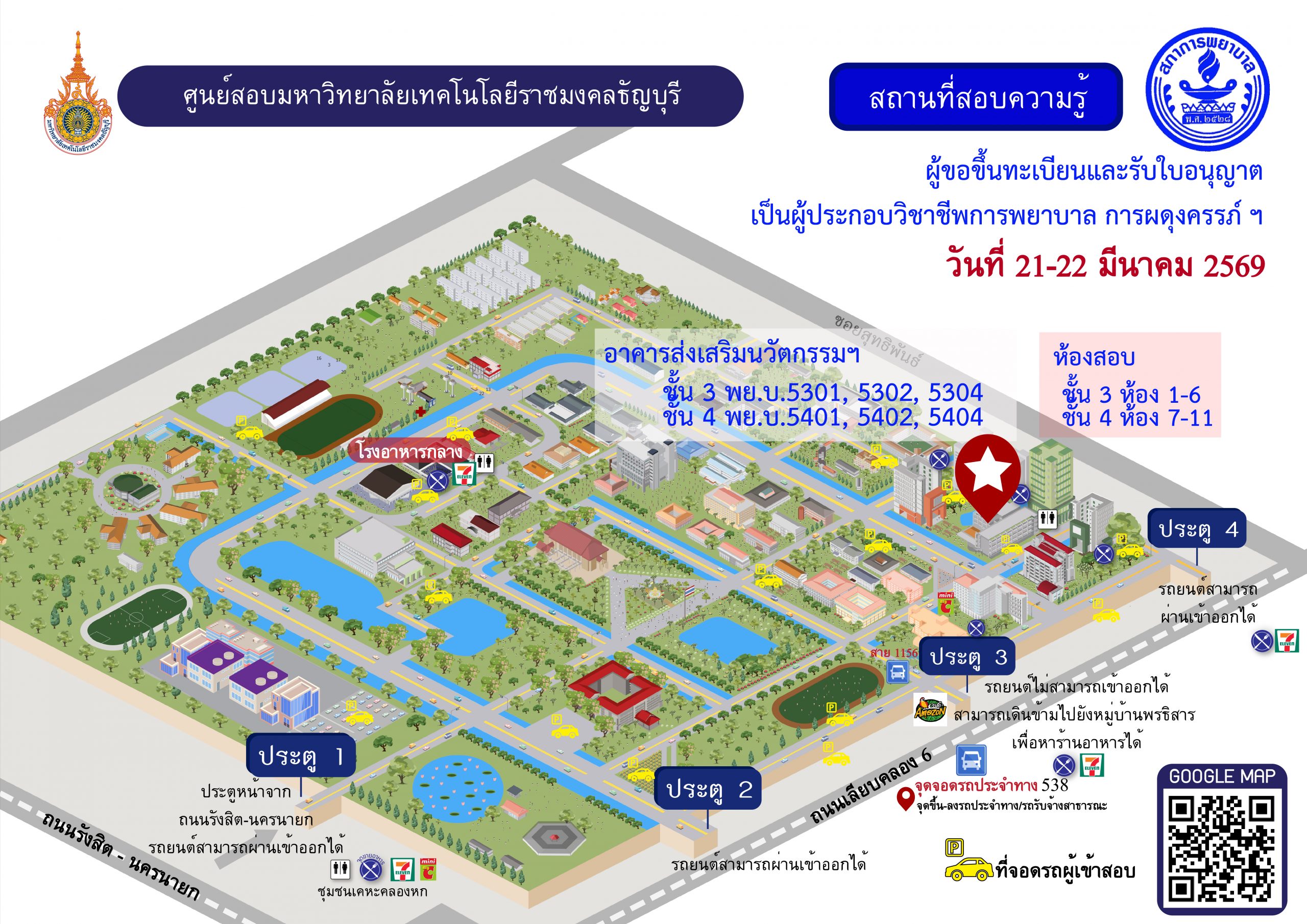 การสอบความรู้ผู้ขอขึ้นทะเบียนและรับใบอนุญาตเป็นผู้ประกอบวิชาชีพการพยาบาล การผดุงครรภ์ ฯ ศูนย์สอบมหาวิยาลัยเทคโนโลยีราชมงคลธัญบุรี ครั้งที่ 1/2569